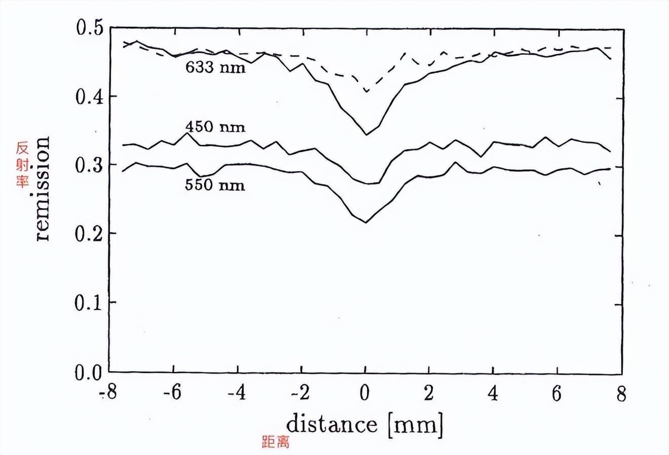 图二 静脉区域与周围区域在不同波长光反射强度上的差异