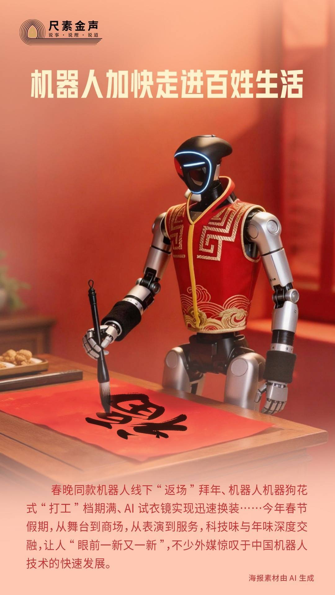 春晚同款机器人线下“返场”拜年、机器人机器狗花式“打工”档期满、AI试衣镜实现迅速换装……今年春节假期,从舞台到商场,从表演到服务,科技味与年味深度交融,让人“眼前一新又一新”,不少外媒惊叹于中国机器人技术的快速发展。