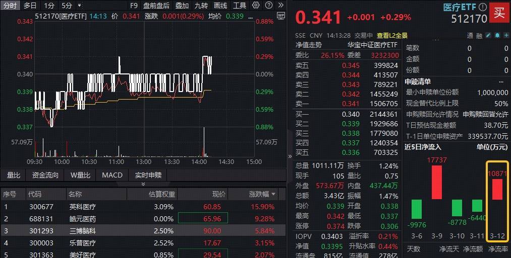 全市场规模最大医疗ETF(512170)午后一度逆市翻红,场内显著溢价交易,显示买盘资金活跃,上日逾1亿元资金逢跌净申购。