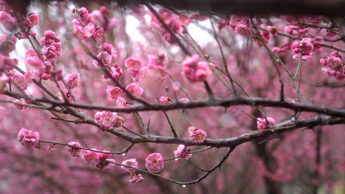 2月6日上午,淅淅小雨浸润着武汉光谷鸡公山公园,宫粉的娇艳与绿萼的清雅交织,近千株梅花在雨中傲然绽放,记者用镜头记录下这一冬日美景。鸡公山公园现有宫粉梅花856株、绿萼梅花100株,今年花期较往年提前20天,2月8日便进入盛花期,将持续至3月初。(湖北日报全媒记者张竞恒、通讯员徐双、王万里)