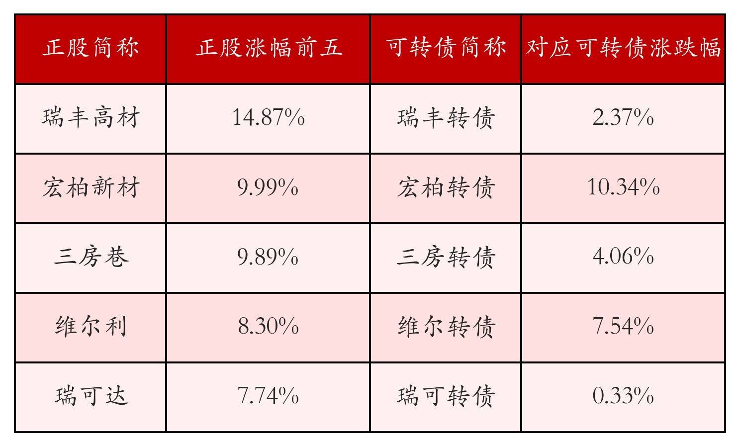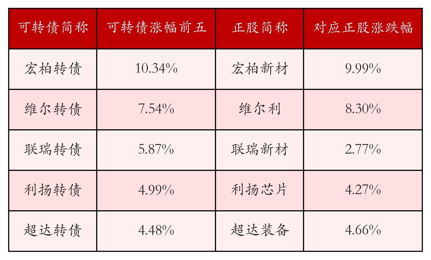 南财智讯3月16日电,盘后数据显示,债市方面,中证转债指数收跌0.36%,报506.83,成交额为706.49亿元。可转债方面炒股配资找配资,今日共成交360只可转债炒股配资找配资,其中172只收涨,0只收平,188只收跌。具体来看,30只可转债涨幅超过2%。其中宏柏转债(111019)涨10.34%,维尔转债(123049)涨7.54%,联瑞转债(118064)涨5.87%。今日有31只可转债跌幅超2%,中宠转2(127076)跌16.74%,嘉泽转债(113039)跌15.53%,金05转债(118063)跌6.95%。存在交易量的可转债所对应的正股中,158只收涨,11只收平,191只收跌。具体来看,13只可转债对应正股涨幅超过5%,其中,宏柏新材(605366)涨停,收涨9.99%;三房巷(600370)涨停,收涨9.89%。同时所对应的可转债:宏柏转债(111019)同涨10.34%;三房转债(110092)同涨4.06%。今日有17只可转债对应正股跌幅超过5%,没有正股跌停。